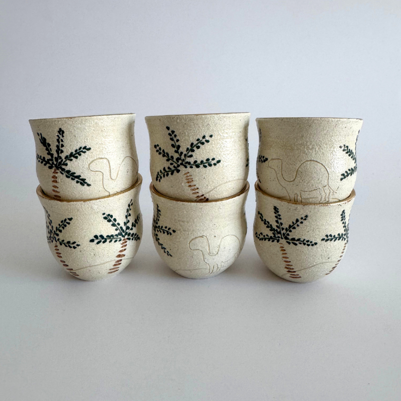 Fenjan (Arabic Coffee Cup) - Palm & Camel (Set of 4 / 6)